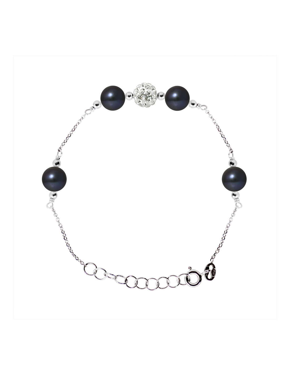 Bracciale in argento massiccio Bracciale in cristallo bianco 4 perle bianche interamente