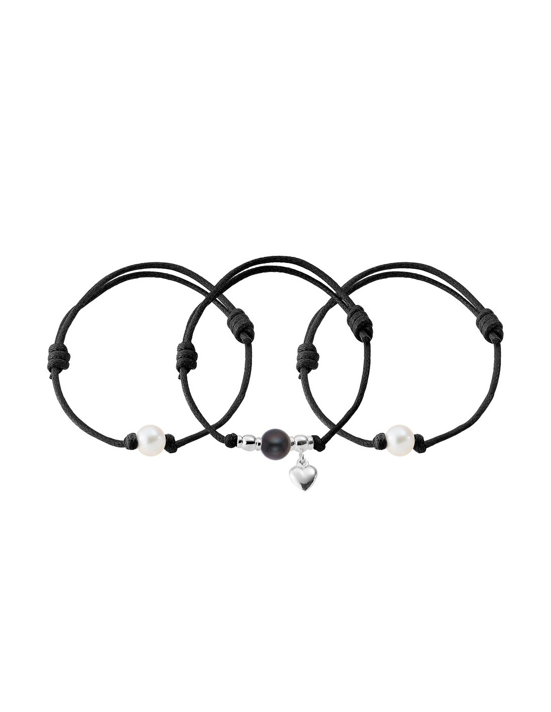 Set di 3 braccialetti - Perline genuini - Massiccio Argento - Fatto a mano