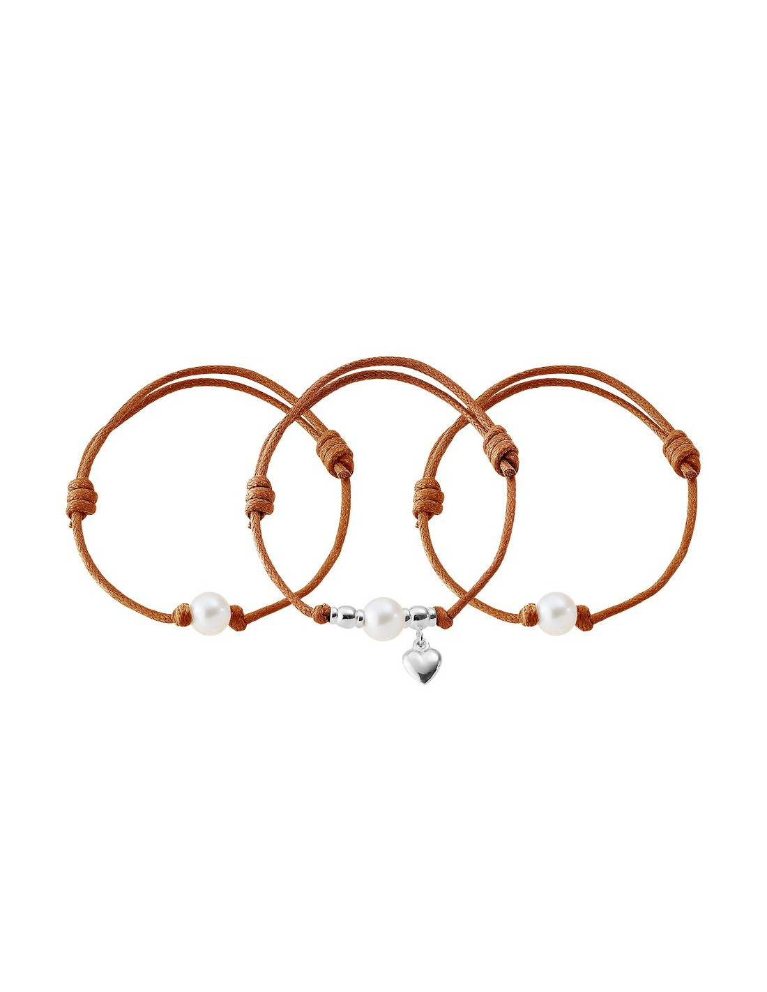 Set di 3 braccialetti - Perline genuini - Massiccio Argento - Fatto a mano