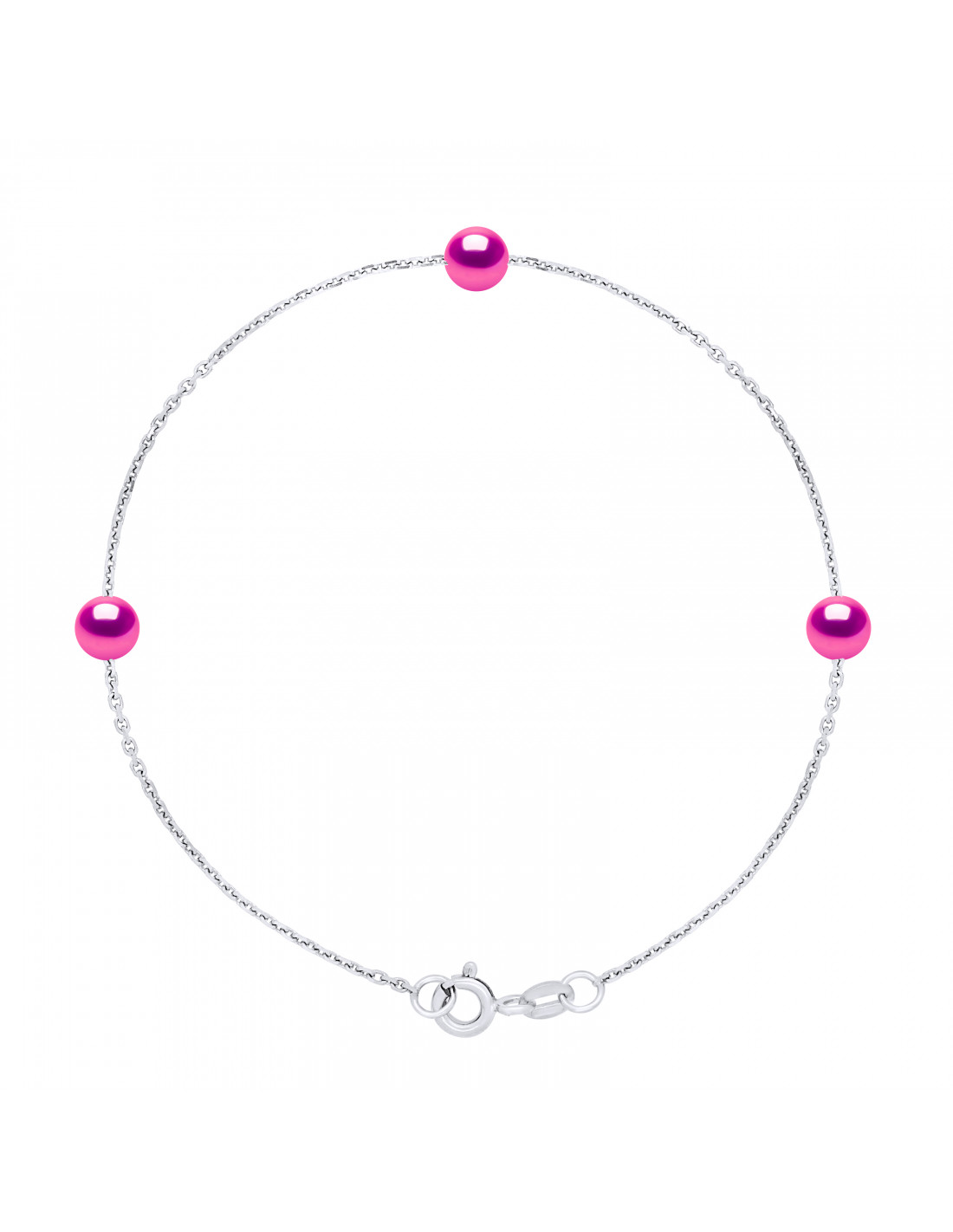 Braccialetto con corde 3 Perline di coltura rotonda 5 mm Argento 925 - 6 colori - Romy
