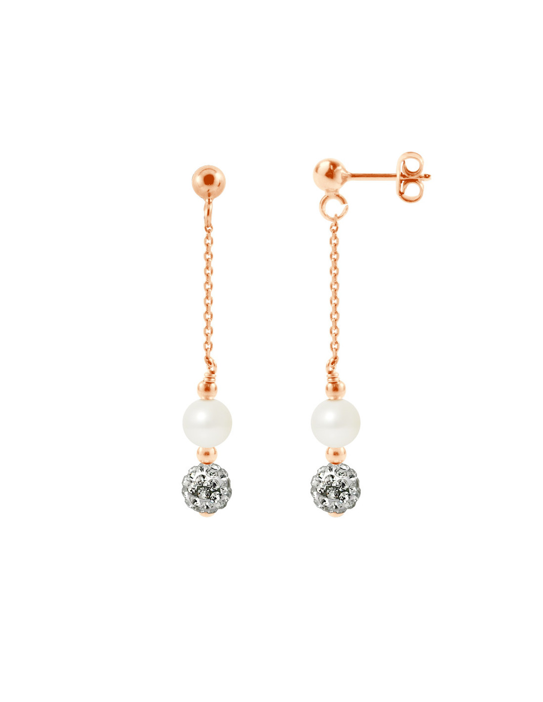 Pending Orecchini Cultura Perle e cristallo - Placcato in oro rosa 925 in argento - ANISSA