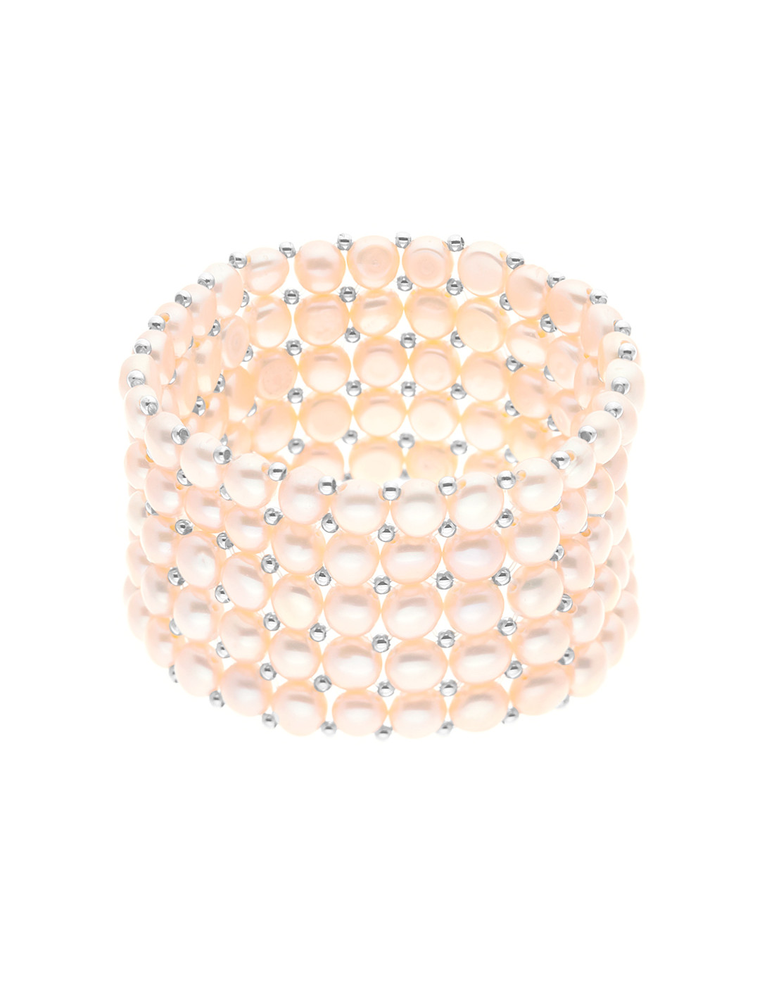 - Bracciale a 5 righe in polsino in vere perle d'acqua dolce 3-4 mm
