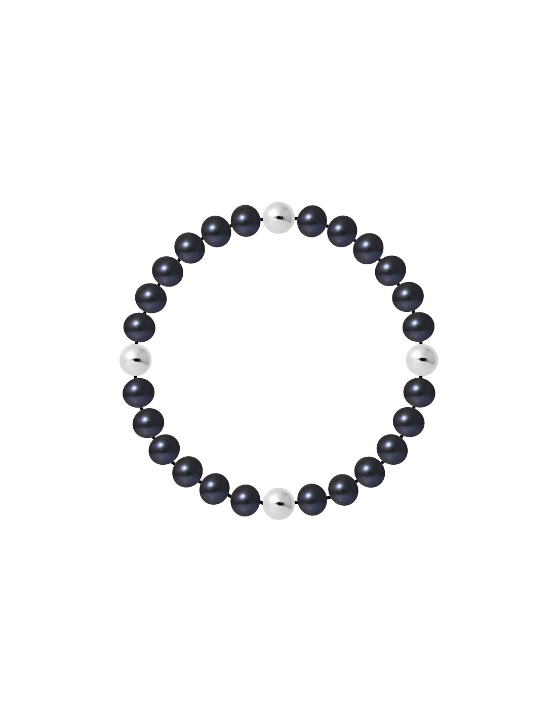 Brancatura genuina BRACCIALE D'acqua dolce Branelli Semi rotondi 6-7mm Sfere d'argento alternate