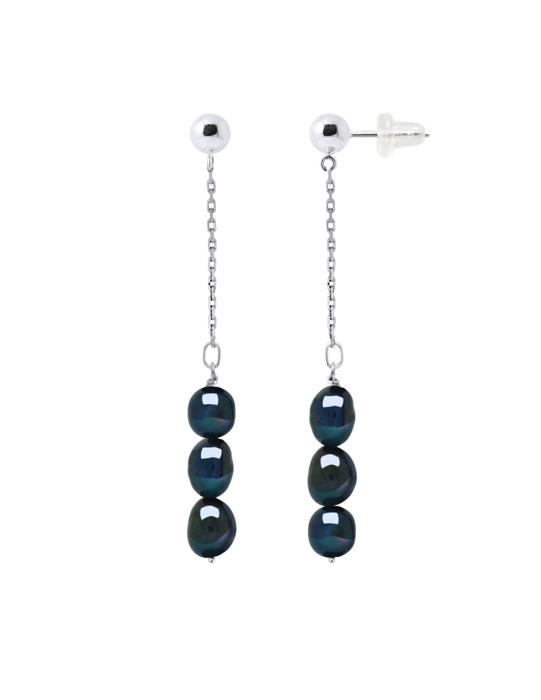 Orecchini a sospensione 3 perline di coltura barocca 6 mm in argento 925 - Alba