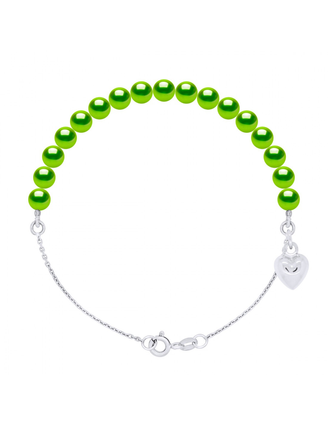Braccialetto a catena, fascino cardiaco e perline di coltura da 5 mm - 4 colori - Ina