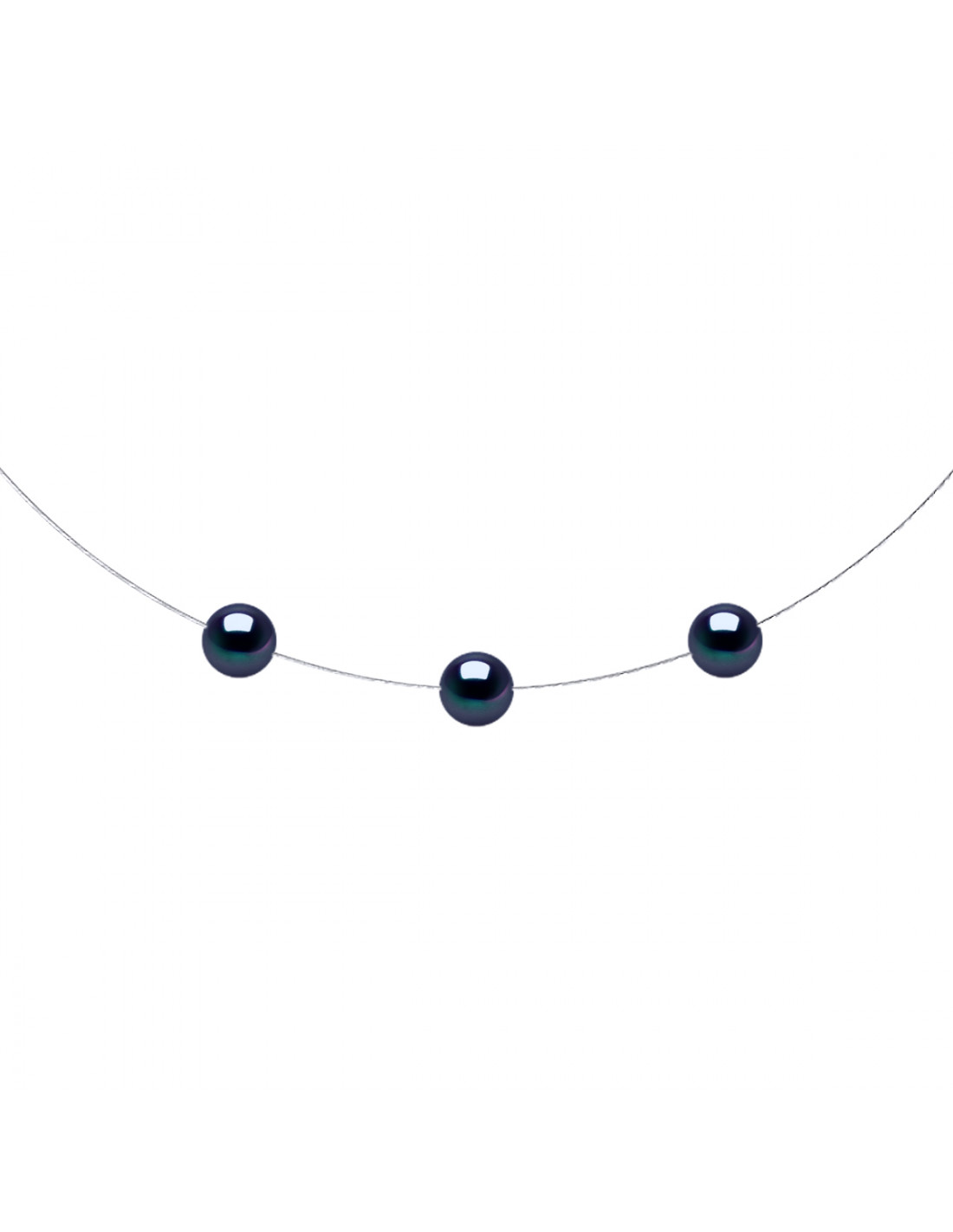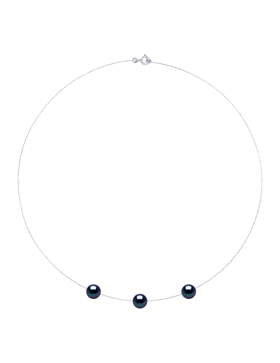 Collana in cavo d'oro con 3 perline di coltura rotonda 8 mm - 5 colori - Maeva