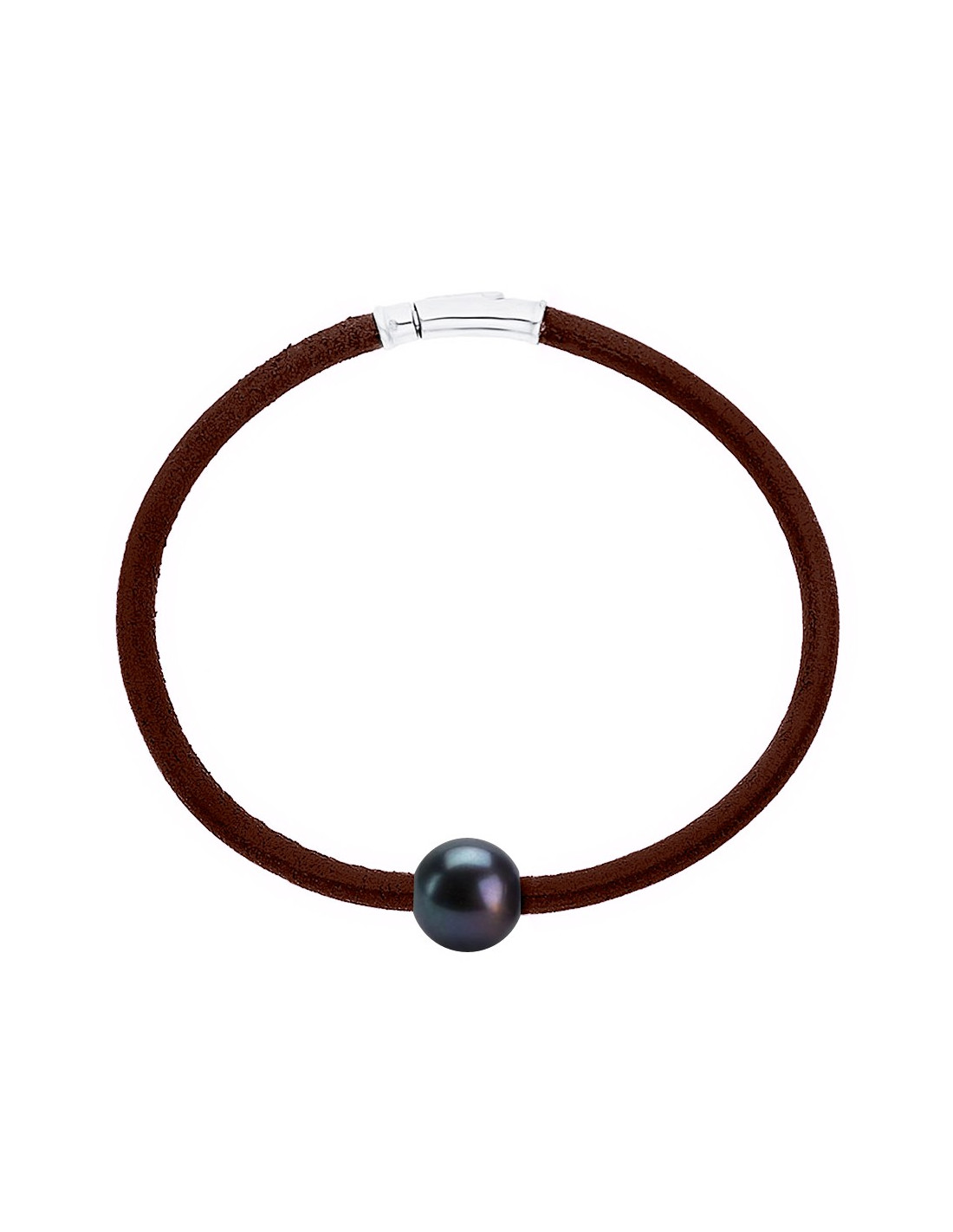 Braccialetto in pelle - Colori naturale - Adornato con una vera coltura d'acqua dolce rotonda 9-10 mm - Colori nero "stile tahitiano" - chiusura a cricchetto 925 millesimi rodium - lunghezze disponibili da 14 a 19 cm - fornito con certificato di autenticità e garanzia internazionale - Fabbricazione nei nostri workshop