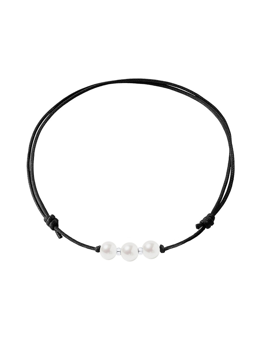 Collana in ciliegio in argento argento 3 Cavo nero per perle bianche autentiche