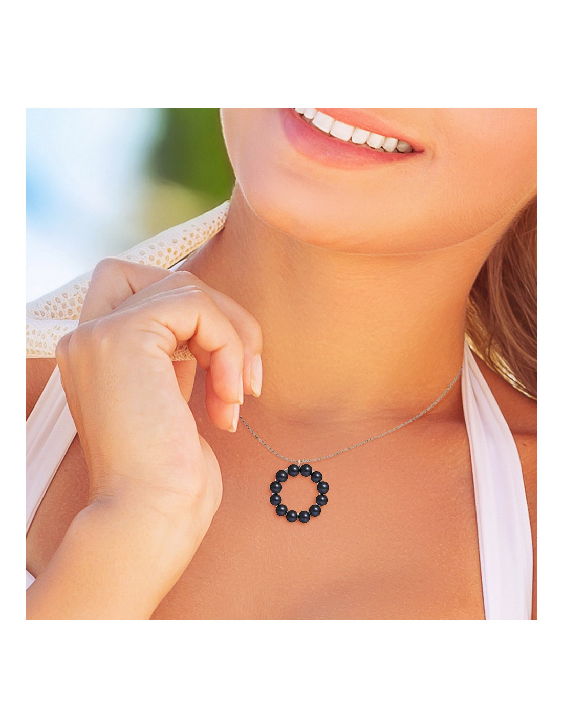 Collana a sospensione 12 perline culturale - 3 colori - 925 Silver - Zia