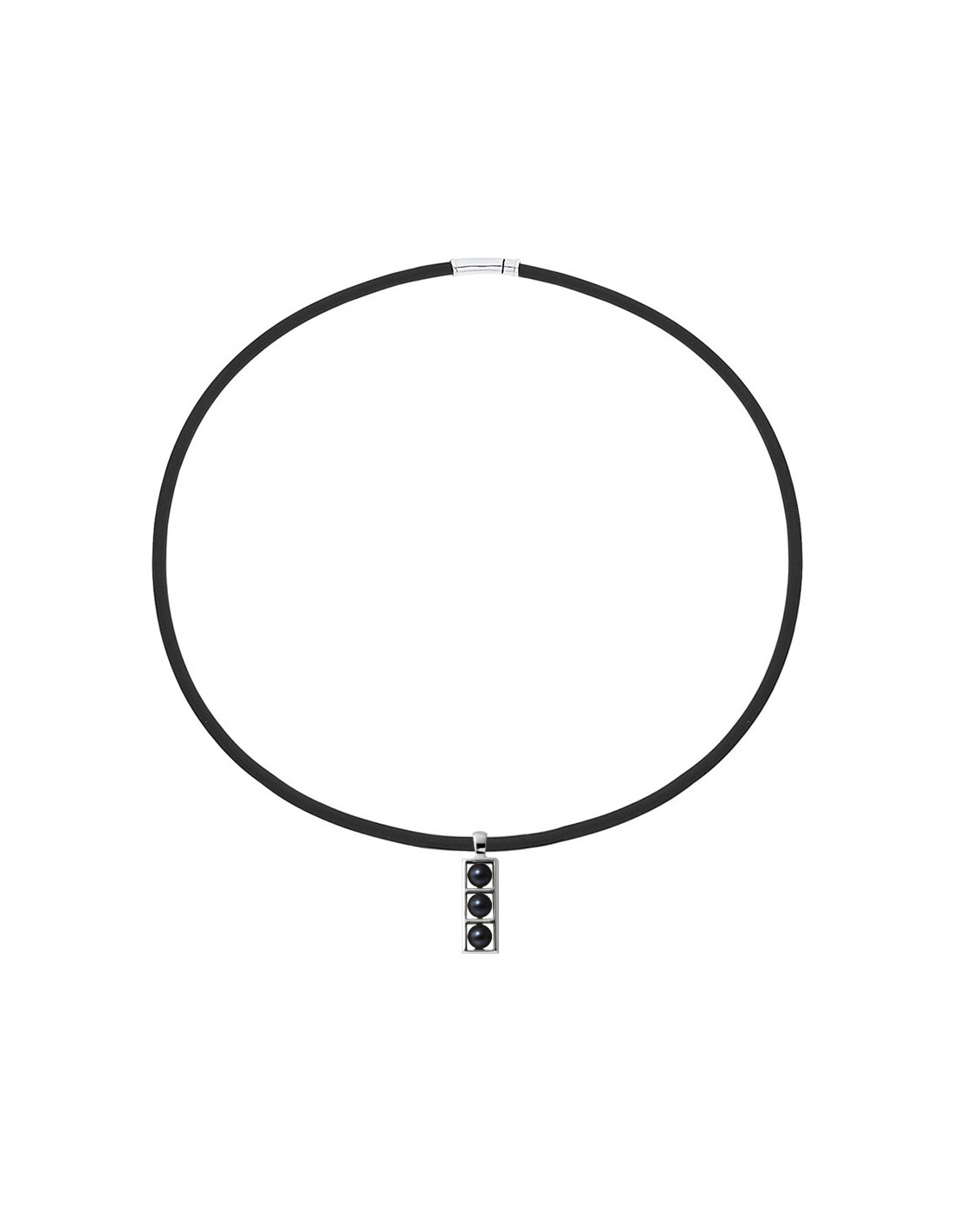 Collana Trilogy 3 Perline di coltura nera in neoprene - Argento 925 - Wikia