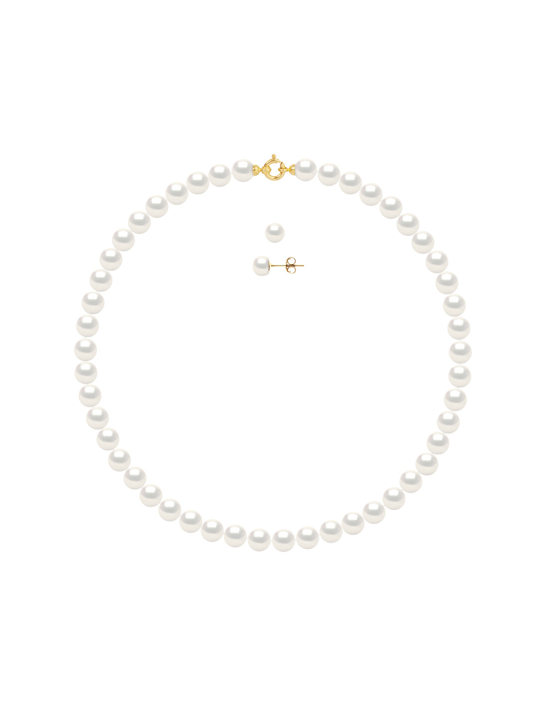 Collana in oro Prestige e orecchini perline rotonde 7 mm - 3 colori - Clelia