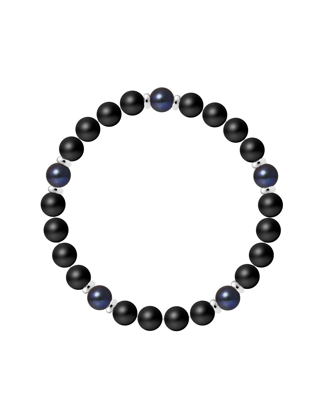 Bracciale Bracciale - 5 Genuine Branelli rotondi di coltura d'acqua dolce 9-10 mm - Colori Black Tahiti - 10 Argento fallisce 925 - Agata nera / Onyx Mat - Elasticizzato - Fornito con certificato di autenticità e garanzia internazionale - Fabbricazione nei nostri laboratori francesi