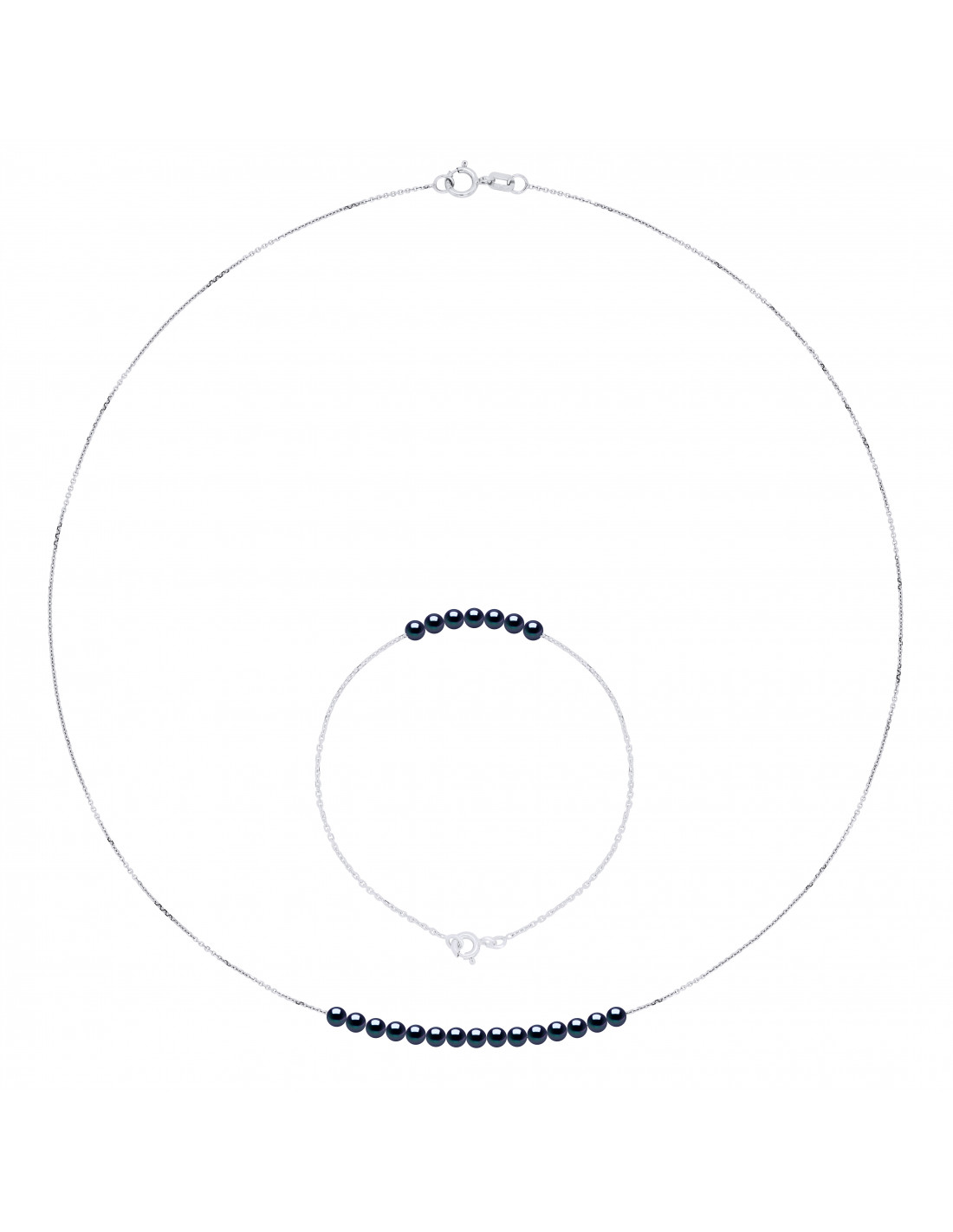 - Set di collana + braccialetto: collana 15 perline di coltura d'acqua dolce - bracciale 7 perline di coltura d'acqua dolce - rotondo 3-4 mm