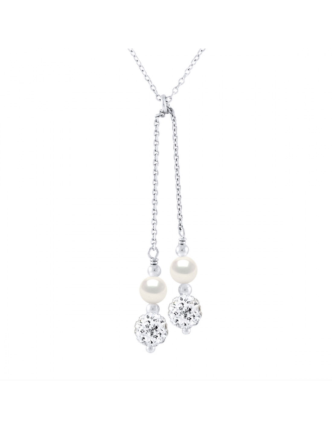 Collana Duo argento 925, cristallo e rotonde perline di cultura 6 mm - Alix