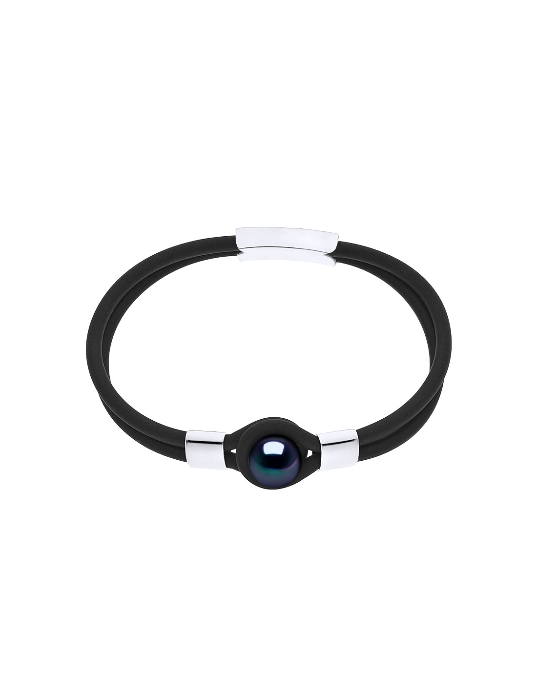 Doppio braccialetto in neoprene con perla di cultura nera - Argento 925 - Zaro