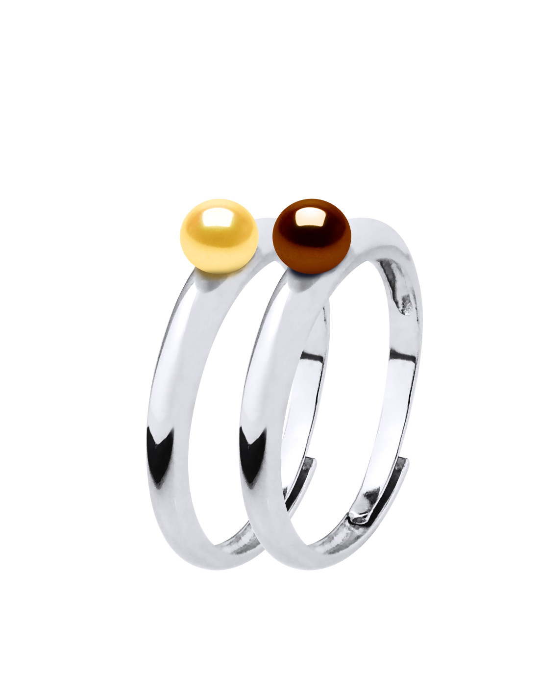Cultura perline duo anello 4mm argento 925 - Lea II