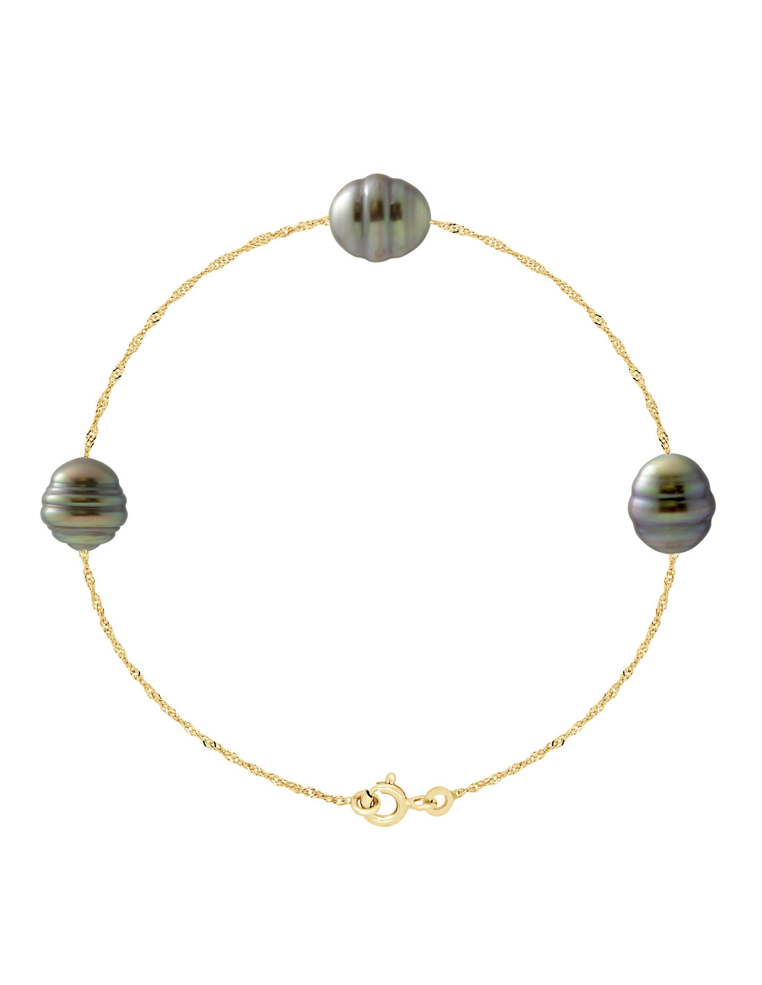 Braccialetto a catena in oro con 3 perline Tahiti 12 mm Tahiti - Rapano