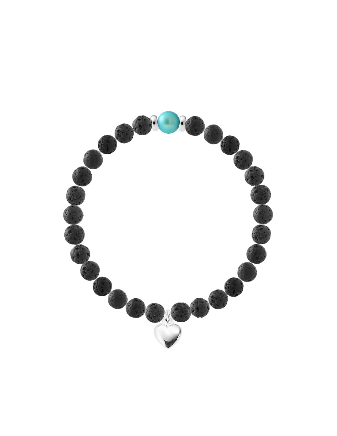 Braccialetto di fascino cuore - Cultura perla e pietra lavica - Argento 925 - Nadia